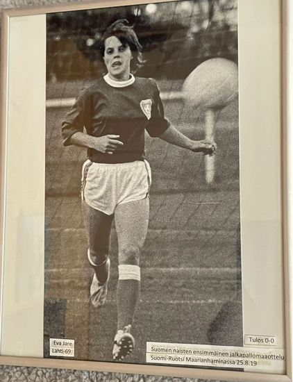 Mutta kipinä jäi kytemään. Kotona jalkapallo oli verissä. Isä oli pelannut Lahden Pallomiehissä hyökkääjänä. Hän ei koskaan ehtinyt nähdä tyttärensä pelejä, kuolema vei ennen kuin naisten jalkapallo Suomessa ehti kunnolla alkaa. Äiti ja sisarukset sen sijaan istuivat katsomossa, kun Eva yli 20-vuotiaana vihdoin pääsi pelaamaan.